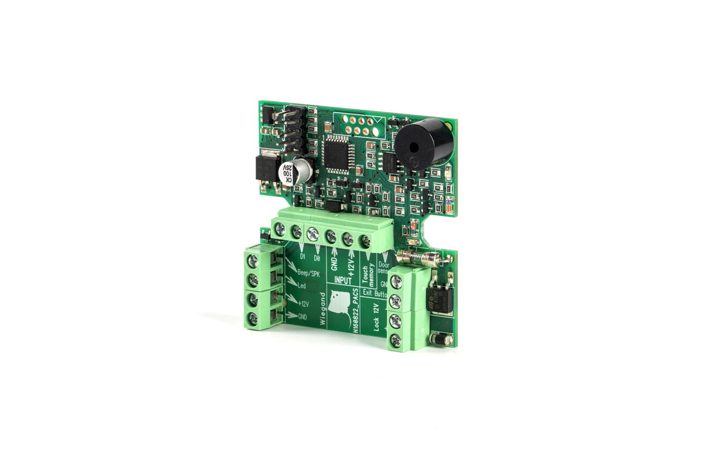 PACS-01SA разработан и создан в России, поэтому все контакты на плате на русском языке, что облегчает установку. А при подключении комплекта радиоуправления SPRUT RC4R, помимо контроля двери, PACS-01SA превращается в систему удаленного управления по беспроводному пульту управления от шлагбаума до двери.