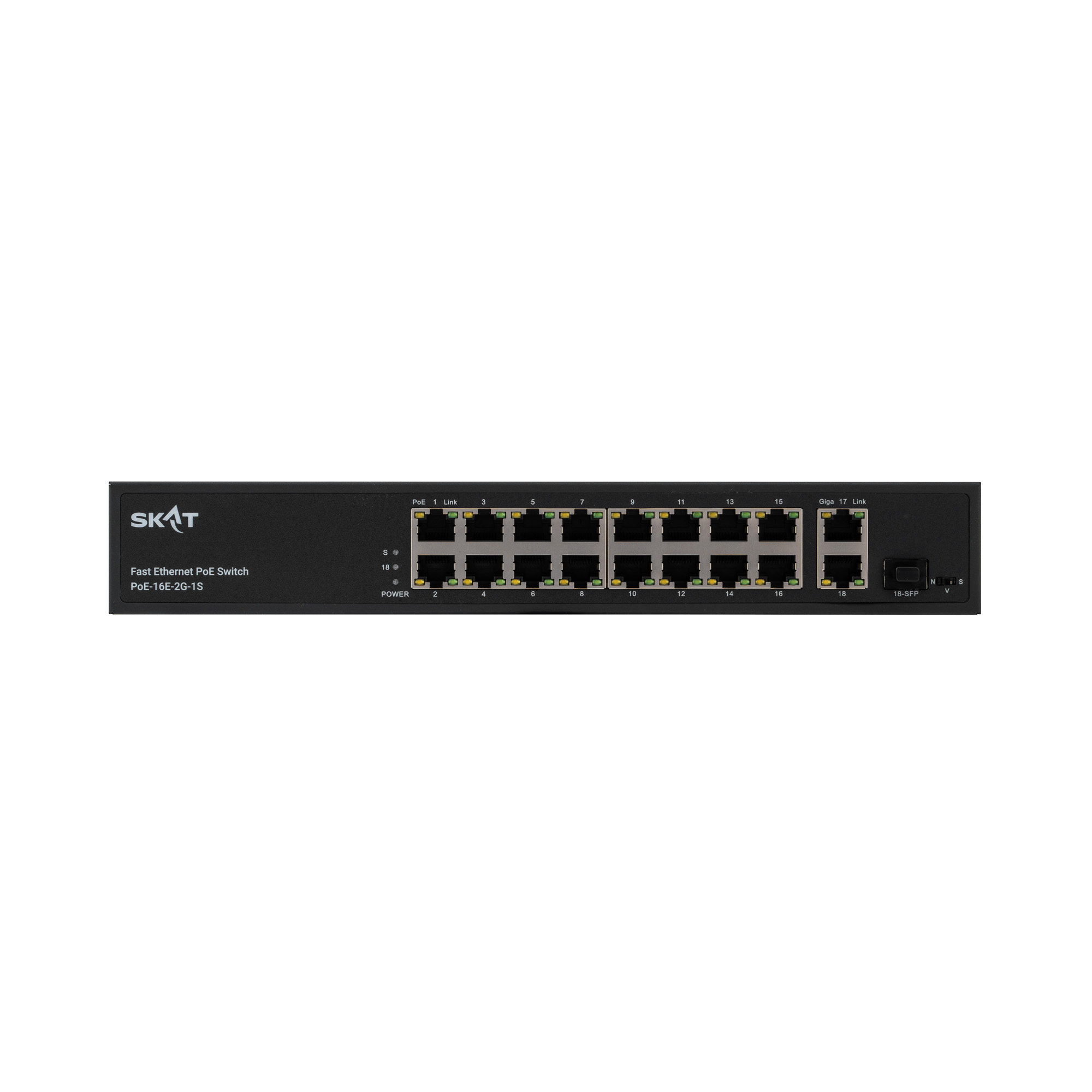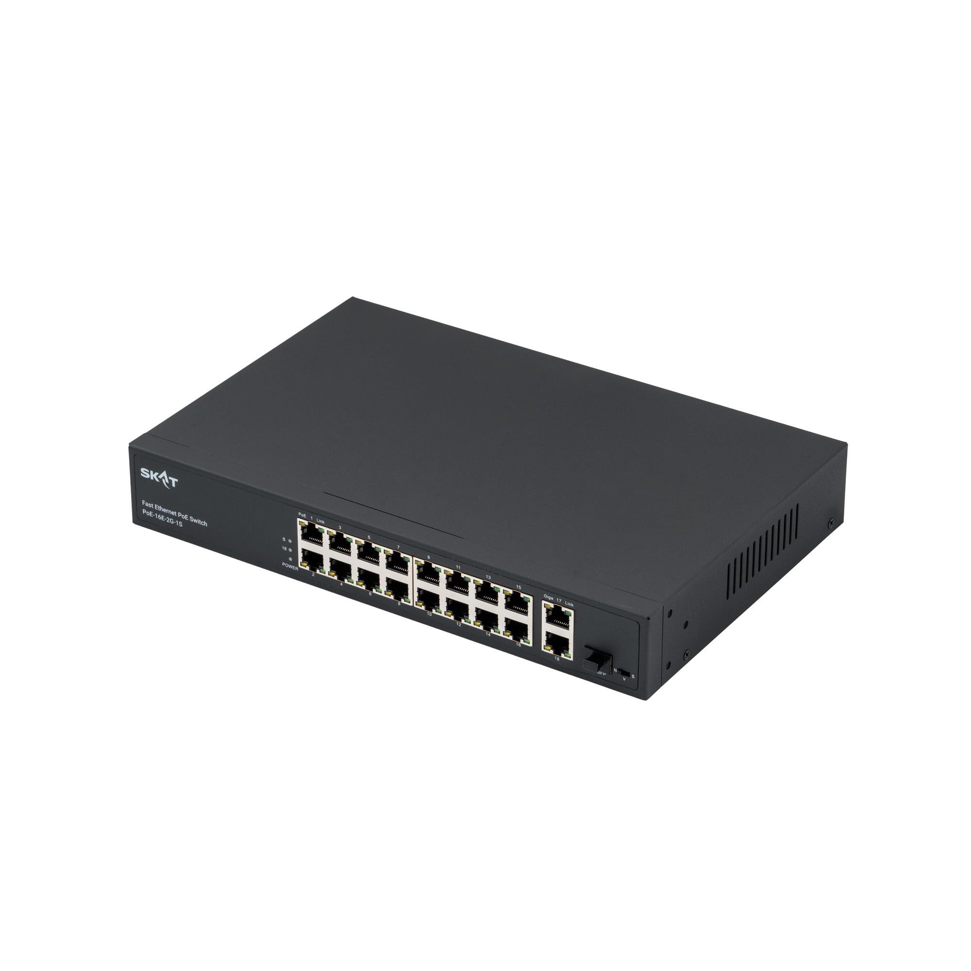 SKAT PoE-16E-2G-1S представляет собой специализированный неуправляемый PoE коммутатор для использования в системах видеонаблюдения и безопасности. Характеризуется высокой надежностью работы благодаря защите от электростатических разрядов и перепадов напряжения, позволяет организовать качественную передачу информации в сети Ethernet.