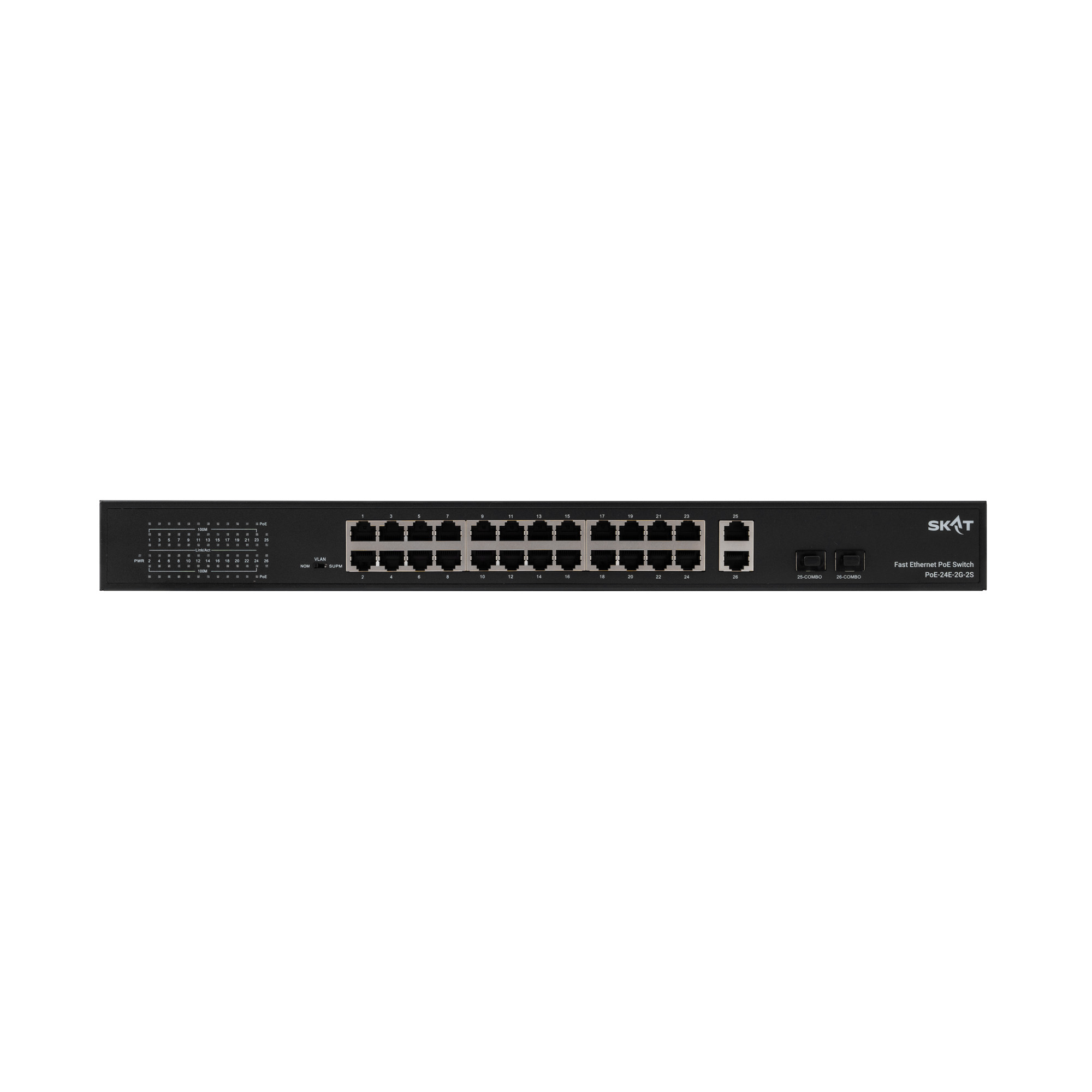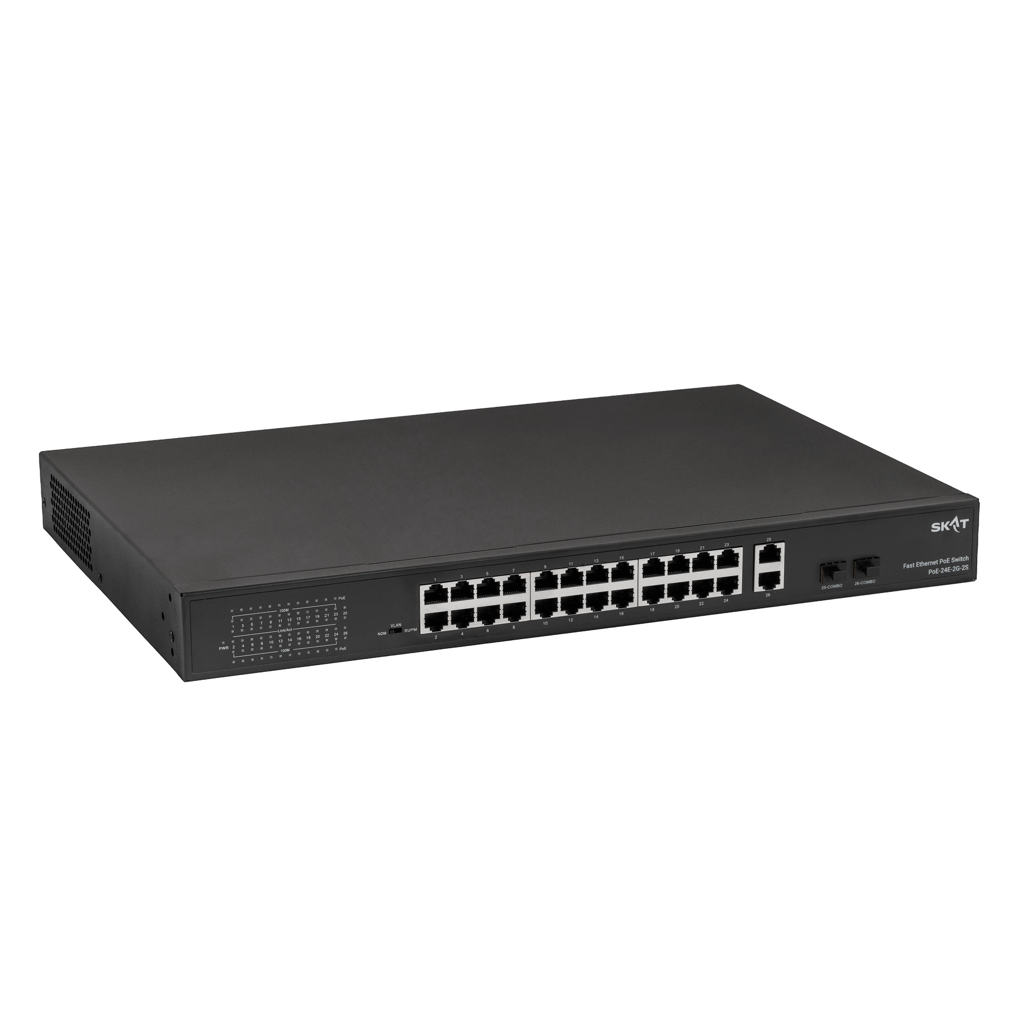 SKAT PoE-24E-2G-2S представляет собой специализированный неуправляемый PoE коммутатор для использования в системах видеонаблюдения и безопасности. Характеризуется высокой надежностью работы благодаря защите от электростатических разрядов и перепадов напряжения, позволяет организовать качественную передачу информации в сети Ethernet.