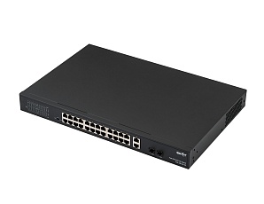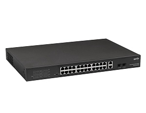 24хEthernet (10/100 Мбит/с), 2хUplink (10/100/1000 Мбит/с) 2хSFP (1000Мбит/с) Порты 1–24 поддерживают PoE (выход первого порта 60 Вт) |