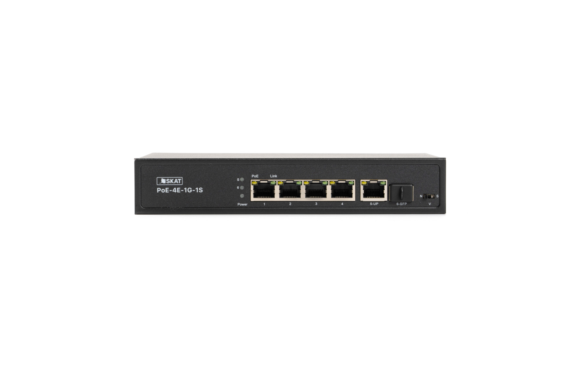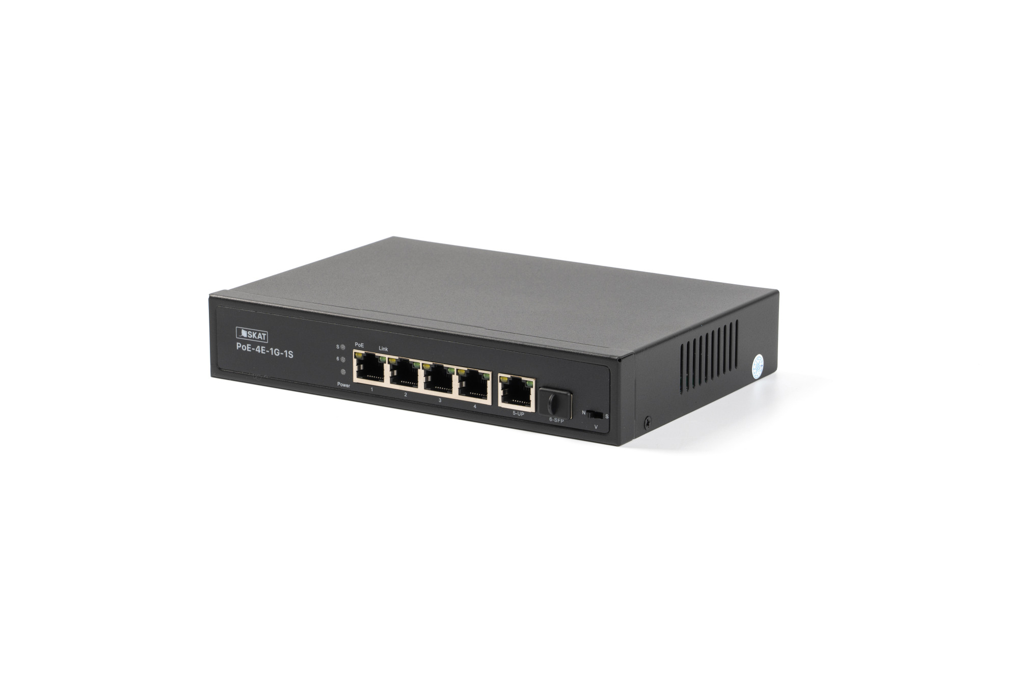 SKAT PoE-4E-1G-1S представляет собой специализированный неуправляемый PoE коммутатор для использования в системах видеонаблюдения и безопасности. Характеризуется высокой надежностью работы благодаря защите от электростатических разрядов и перепадов напряжения, позволяет организовать качественную передачу информации в сети Ethernet.