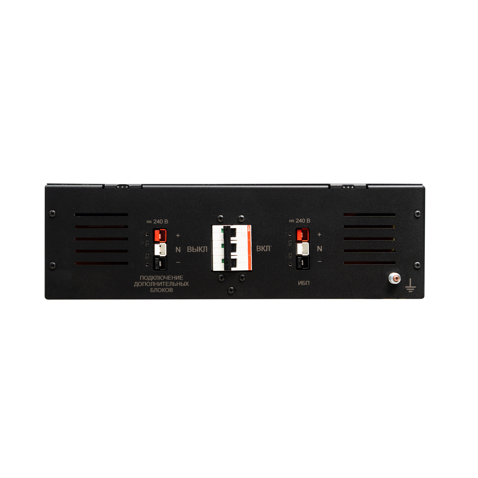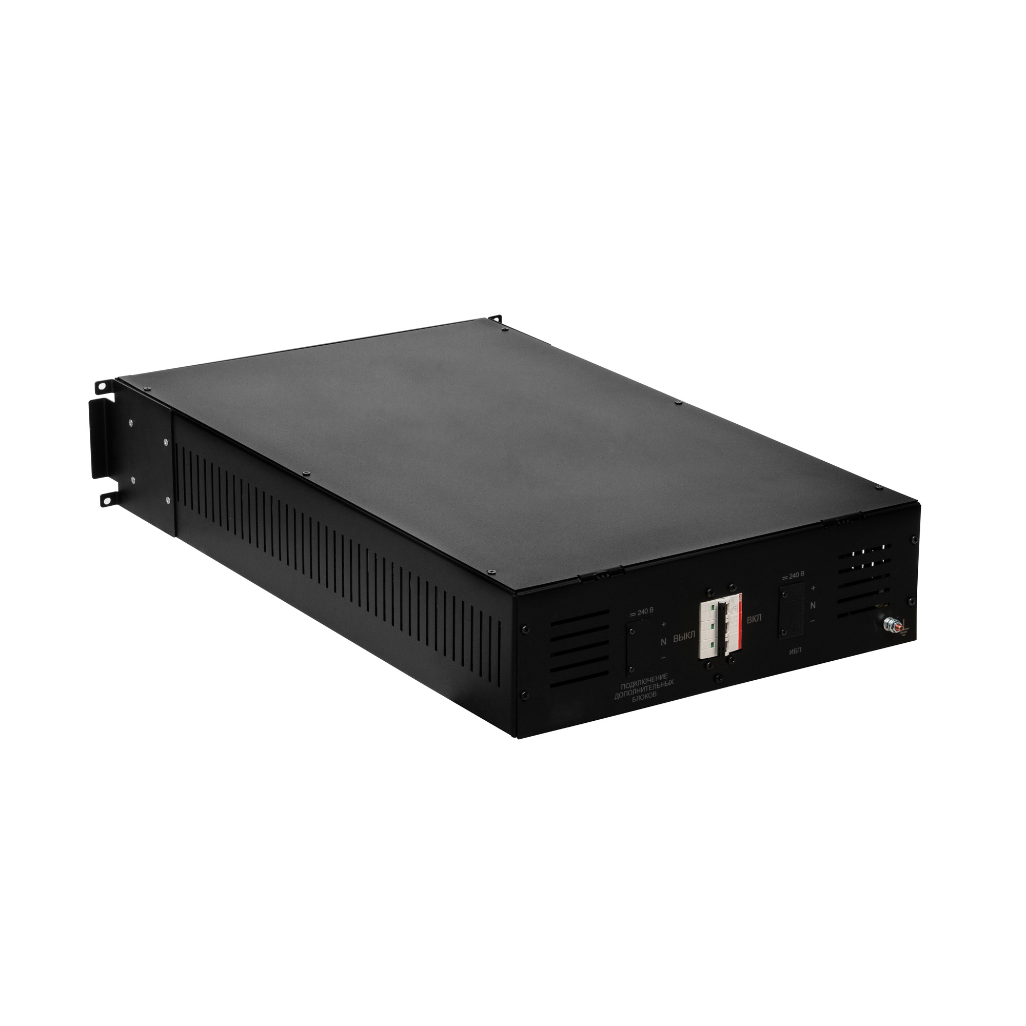 - Металлический корпус 19” высотой 3U. Обеспечивает эффективный теплоотвод от АКБ. Позволяет устанавливать изделие в горизонтальном положении в телекоммуникационные шкафы или вертикально на пол. В комплекте кронштейны и оборудование для крепежа.