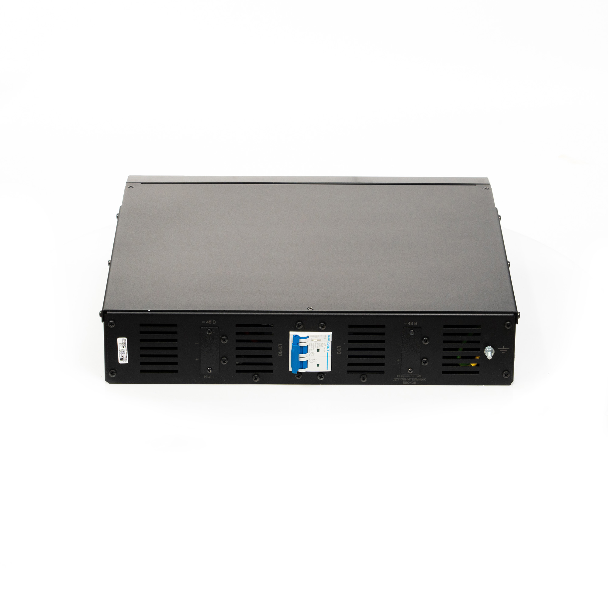 - Металлический корпус 19” высотой 2U. Обеспечивает эффективный теплоотвод от АКБ. Позволяет устанавливать изделие в горизонтальном положении в телекоммуникационные шкафы или вертикально на пол. В комплекте кронштейны и оборудование для крепежа.