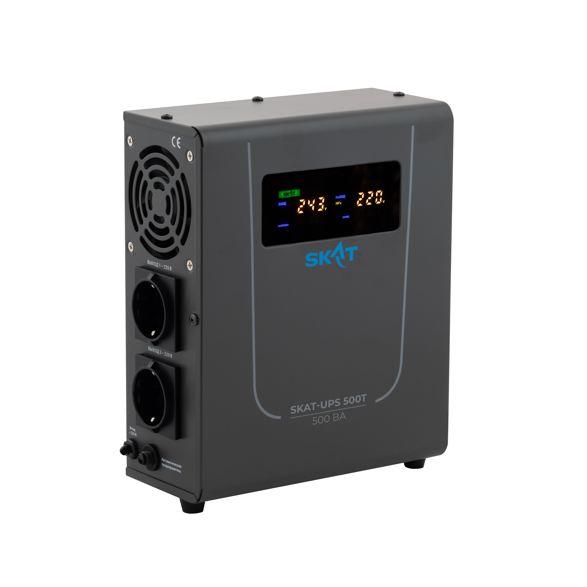 SKAT UPS-500T – линейно-интерактивный источник бесперебойного питания для котлов отопления, обеспечит подключенные к нему устройства длительным, стабилизированным электропитанием при отсутствии напряжения сети, используя при этом электроэнергию, запасенную в аккумуляторных батареях. Защитит от неисправностей в сети и предотвратит выход оборудования из строя.