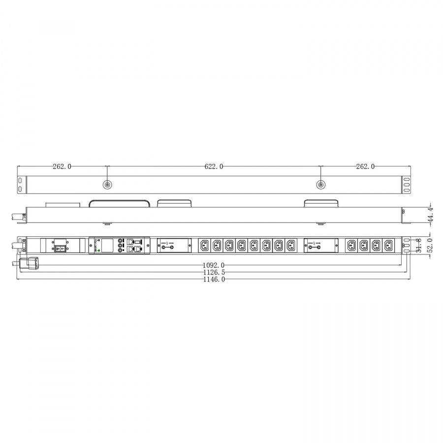 • 2 варианта крепления: безинструментальный монтаж с помощью пегтулов, а также в комплекте угловые кронштейны для установки на торцах PDU