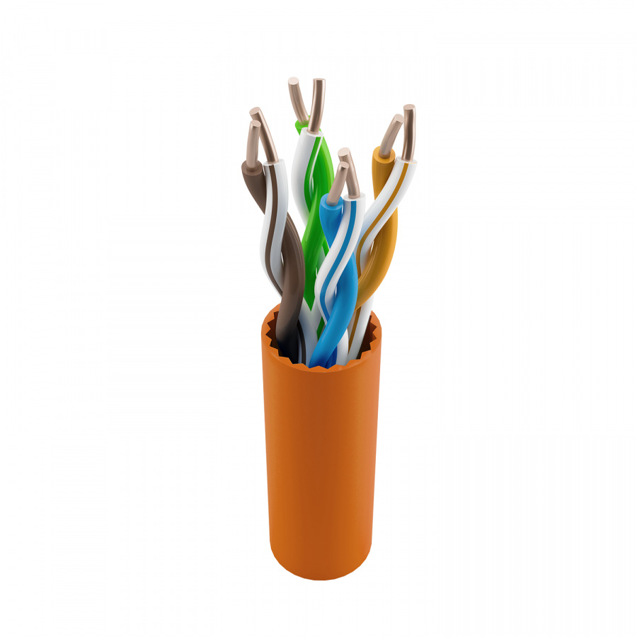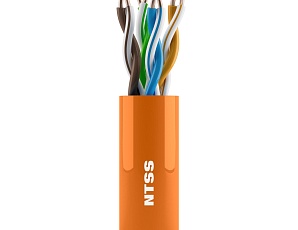 Неэкранированный кабель витая пара NTSS 5е категории U/UTP внутренний 4 пары медных проводников с жилой 24AWG с оболочкой LSZH оранжевого цвета. Используется для построения горизонтальной подсистемы структурированных кабельных сетей.