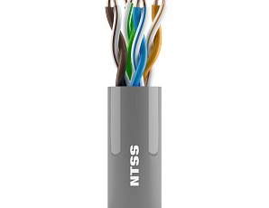 Неэкранированный кабель витая пара NTSS 5е категории U/UTP внутренний 4 пары медных проводников с жилой 24AWG с оболочкой PVC серого цвета. Используется для построения горизонтальной подсистемы структурированных кабельных сетей.