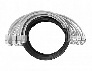 Кабельная сборка NTSS PREMIUM – это несколько кабелей витая пара собранных в пучок и оконцованных разъемами Keystone RJ45, пучок сделан в кабельном чулке для удобства монтажа на больших длинах. Сборки можно изготовить из любого типа кабелей, обычно используют пучки из 6, 12 или 24-х кабелей. Длина кабеля сборки и длина выводов может быть сделана любая по ТЗ заказчика. Готовые сборки очень удобны при проведении монтажа в серверных и ЦОДах, особенно в условиях ограничения по времени. Используя их можно осуществлять быстрый монтаж в стойку с применением наборных патч-панелей, а заделка в чулок позволяет тратить меньше времени на упаковку и закрепление групп проводов. Высокое качество компонентов и обязательное полное тестирование кабельным анализатором каждой линии сборки гарантирует надёжность систем с их использованием. Используя готовые кабельные сборки NTSS PREMIUM можно сократить время на монтаж до 90%.