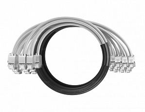 Кабельная сборка NTSS PREMIUM – это несколько кабелей витая пара собранных в пучок и оконцованных разъемами Keystone RJ45, пучок сделан в кабельном чулке для удобства монтажа на больших длинах. Сборки можно изготовить из любого типа кабелей, обычно используют пучки из 6, 12 или 24-х кабелей. Длина кабеля сборки и длина выводов может быть сделана любая по ТЗ заказчика. Готовые сборки очень удобны при проведении монтажа в серверных и ЦОДах, особенно в условиях ограничения по времени. Используя их можно осуществлять быстрый монтаж в стойку с применением наборных патч-панелей, а заделка в чулок позволяет тратить меньше времени на упаковку и закрепление групп проводов. Высокое качество компонентов и обязательное полное тестирование кабельным анализатором каждой линии сборки гарантирует надёжность систем с их использованием. Используя готовые кабельные сборки NTSS PREMIUM можно сократить время на монтаж до 90%.