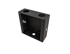 Базовый элемент цоколя, устанавливается на углы рам шкафа, для закрепления используется болт М12 вкручивающийся в отверстие рамы для ножки. Распределяет нагрузку от рамы на площадь соприкасновения угока с полом помещения. Может быть зафиксирован анкером у полу помещения. Для монтажа цоколя на 1 шкаф необходимо 4 уголка.