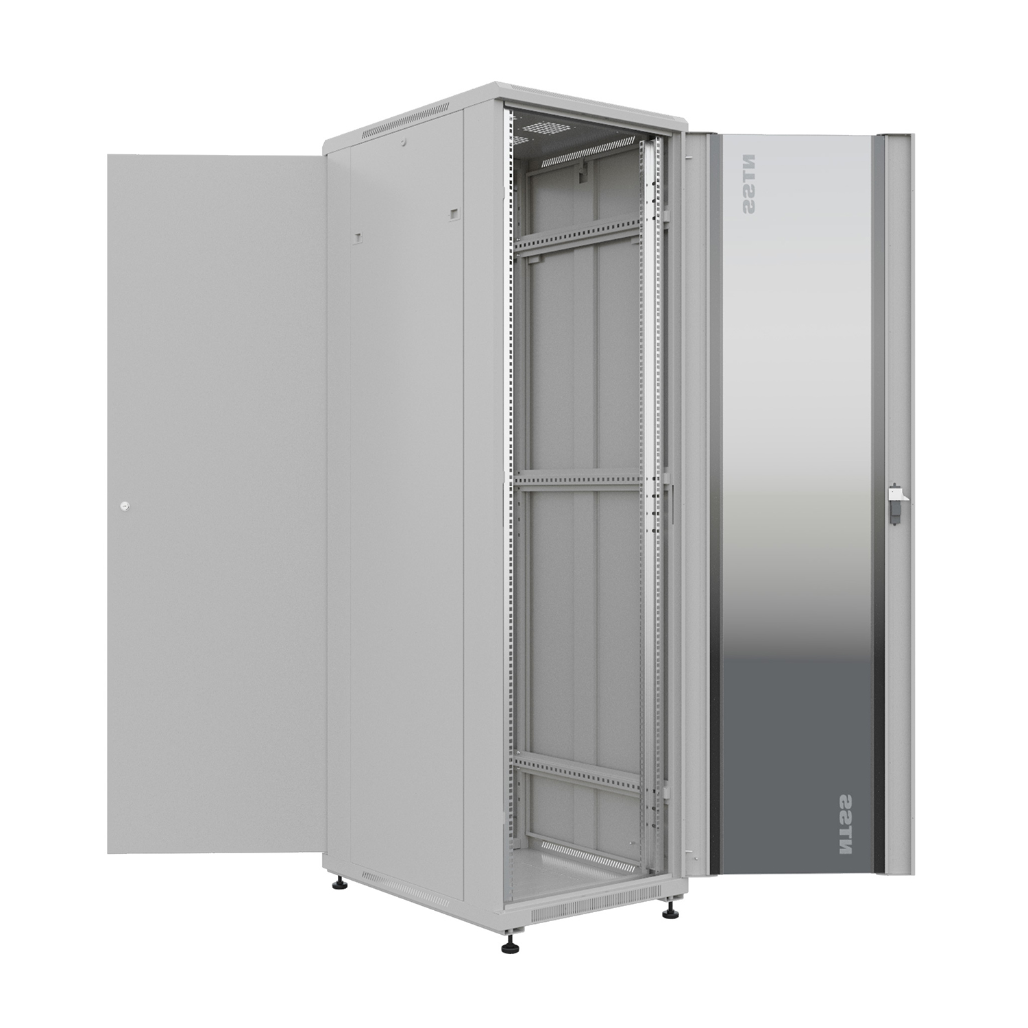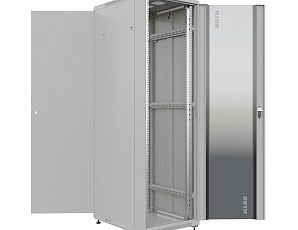 Передняя дверь со стеклом и задняя глухая металлическая ограничивает наполнение шкафа оборудованием с малым тепловыделением до нескольких киловатт. Но при этом аккуратный вид допускает использование его и в обитаемых помещениях рядом с офисной мебелью.