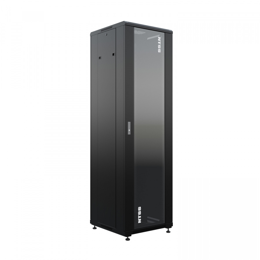 Шкаф напольный универсальный серверный NTSS R 42U 600х600мм, 4 профиля 19, двери стекло и сплошная металл, боковые стенки съемные, регулируемые опоры, разобранный, черный RAL 9005