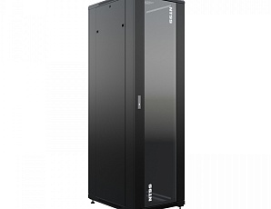 Передняя дверь со стеклом и задняя глухая металлическая ограничивает наполнение шкафа оборудованием с малым тепловыделением до нескольких киловатт.