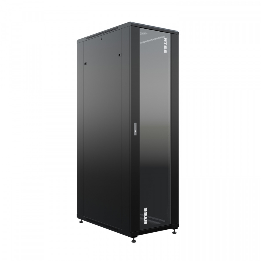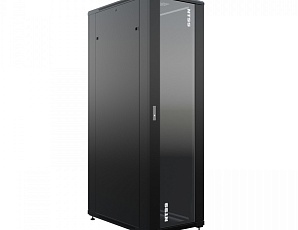 Передняя дверь со стеклом и задняя глухая металлическая ограничивает наполнение шкафа оборудованием с малым тепловыделением до нескольких киловатт.