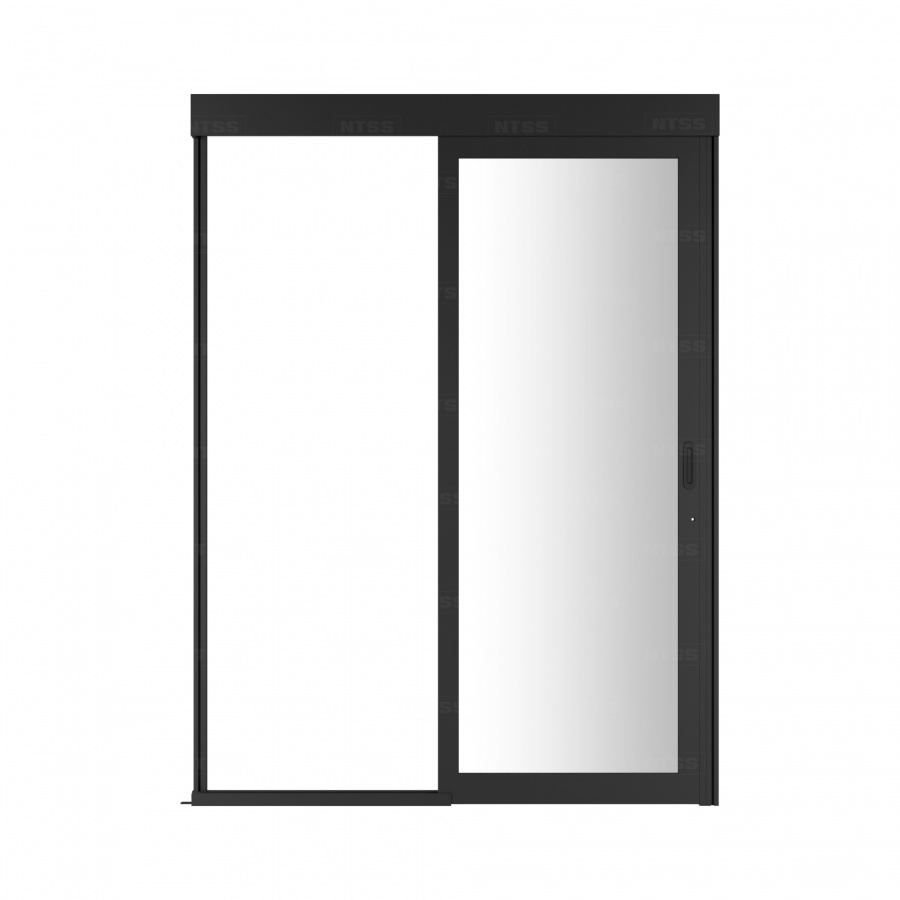 Дверь одностворчатая механическая изолированной системы NTSS, 42U, стекло с замком для коридора без правого ряда шириной 800мм с опорной рамой, черная RAL 9005