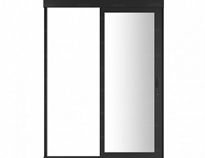 Комплект входной группы шириной 800мм 42U с одностворчатой дверью представляет из себя каркас из толстого алюминиевого профиля с установленном на нем механизме раздвижения. Такие комплекты используются как правило для ограничения воздушного потока в системах изоляции с одним рядом шкафов, точнее в данном случае без правого ряда если смотреть снаружи – дверь отъезжает влево на существующий ряд шкафов. Так же такие группы применяются в случаях организации узких 800мм между рядами горячих коридоров (2 ряда шкафов), встречающихся как при установке рядных кондиционеров в систему, так и в вариантах с построением изоляции с вертикальными боковыми стенками типа «факел». Высота 42U предполагает, что используется дверь позволяющая провезти через нее шкаф высотой от 2096мм и ниже, шириной 600-750мм, указанная высота соответствует большинству 42U шкафов на роликах. Разумеется, при типовом построении входная группа служит местом крепления и опоры для горизонтальных балок системы, идущих над шкафами, а в случае однорядных систем то и метом крепления профиля, идущего по стене или над панелями-заглушками. Входная дверь при необходимости может быть заблокирована при помощи ключа для крестового механизма замка.