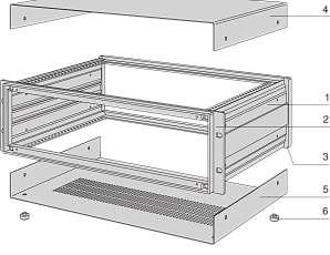 | 1 | Side panel, Al extrusion, RAL 7030,at 6 U: 2 Al corner profiles,1 divider plate (steel plate) | 2 | |