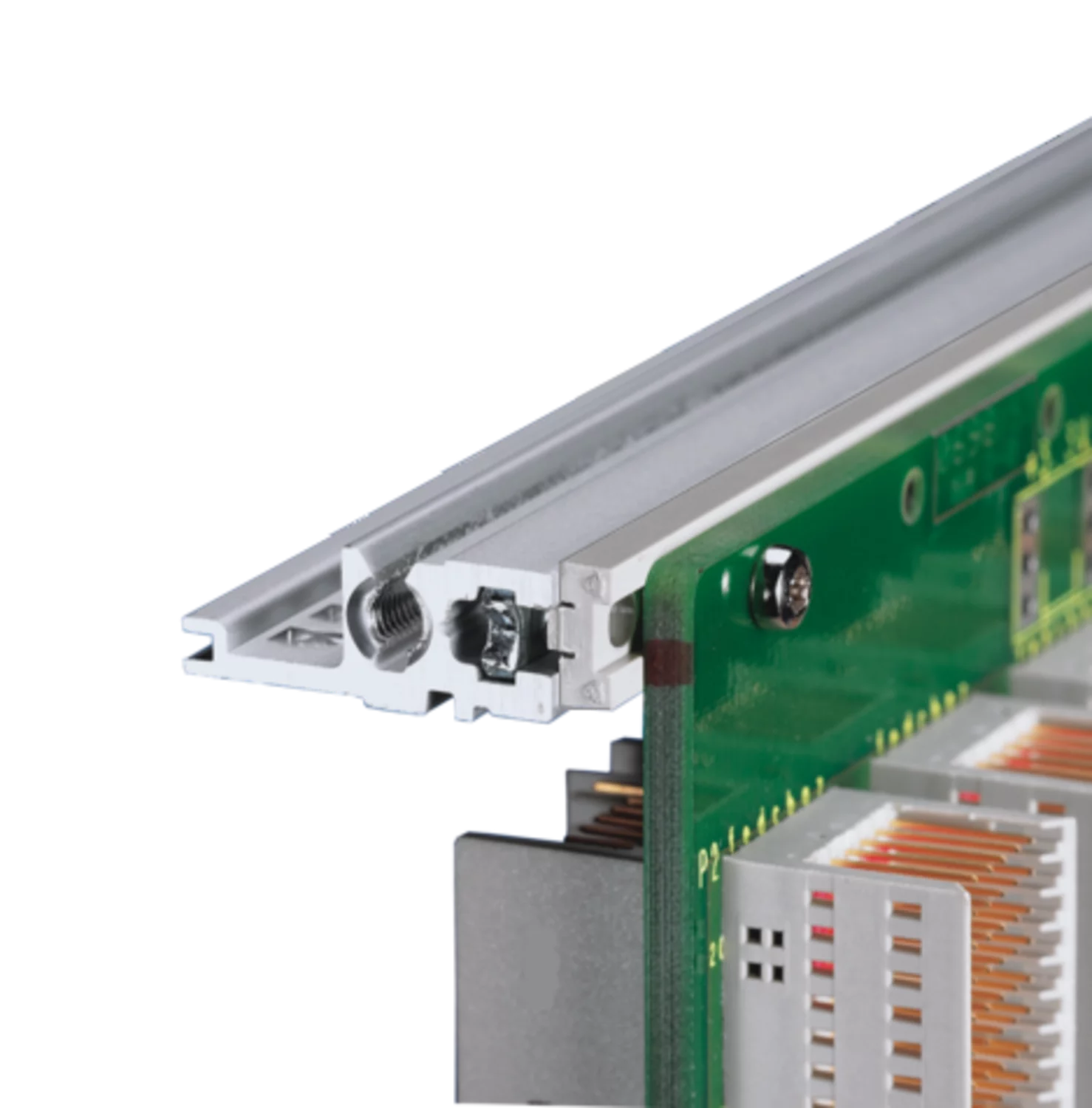 - Задняя горизонтальная рейка для монтажа объединительной платы с изоляционной полоской. Специальные переходные рейки позволяют монтировать модули с кондуктивным охлаждением