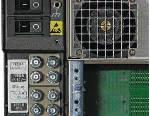 - Входное напряжение -48 В пост. тока/-60 В пост. тока, резервированное (1+1) подключение к источнику питания с предохранителем и выключателем,