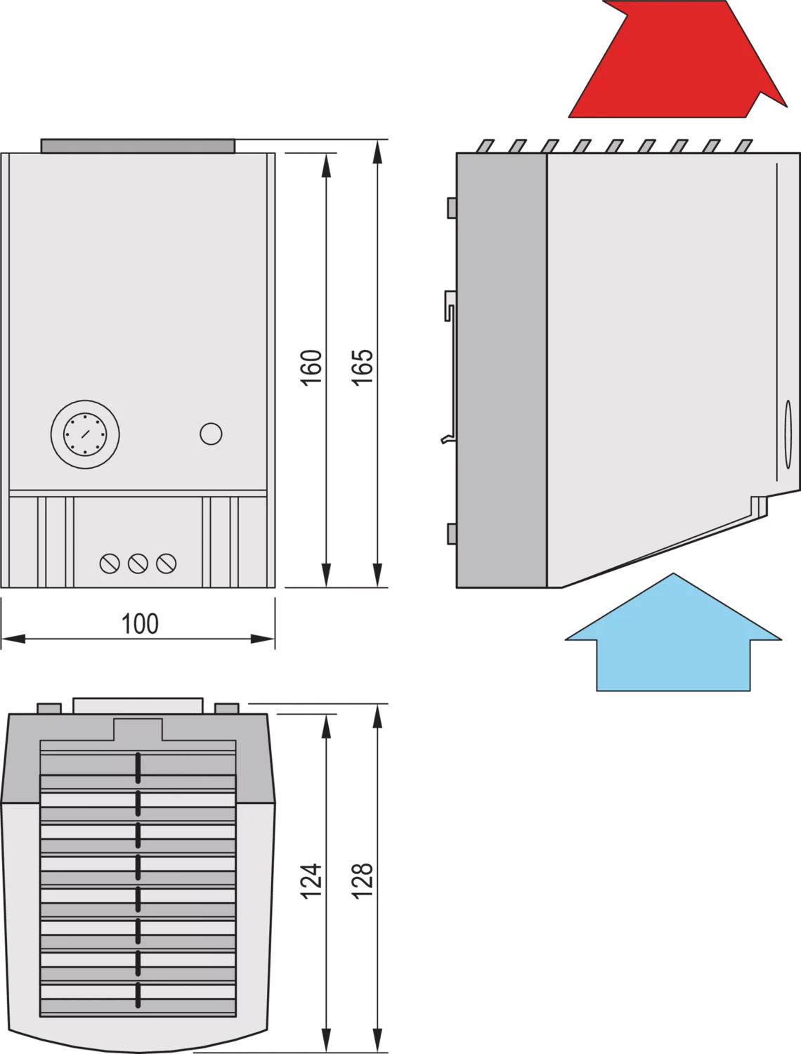 - Трехконтактная клемма, отдельное подключение нагревателя и вентилятора