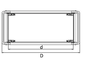 - Front side for front panel mounting without screws and rear side prepared for standard front panel mounting.