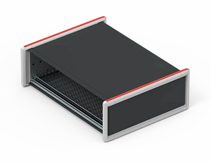 - Case for 19" components (guide rails) or proprietary components (mounting plate).