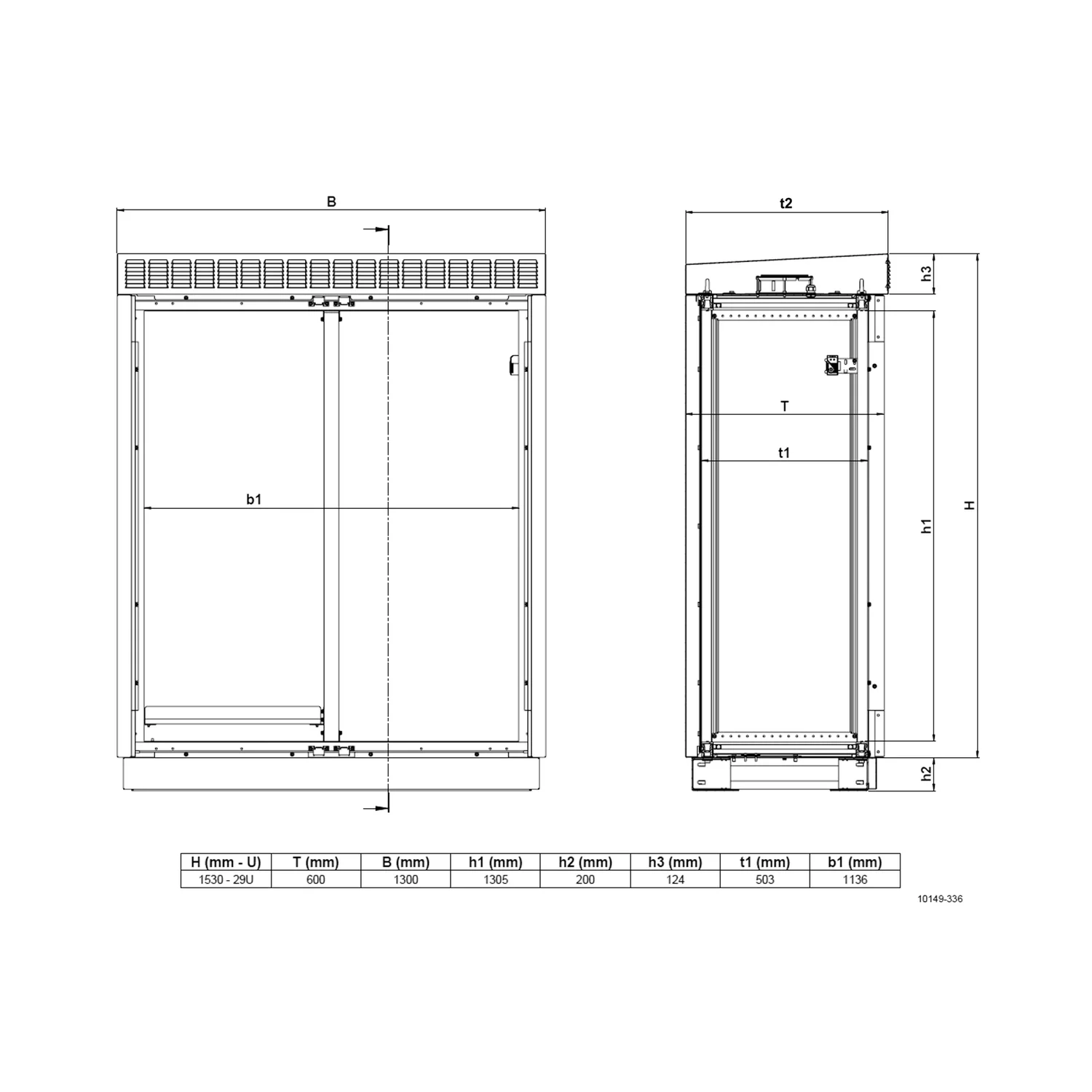 Модульный шкаф VENT с двумя дверями для установки вне помещений, кондиционер, высота 1530 мм, высота 29 U, ширина 1300 мм, глубина 630 мм