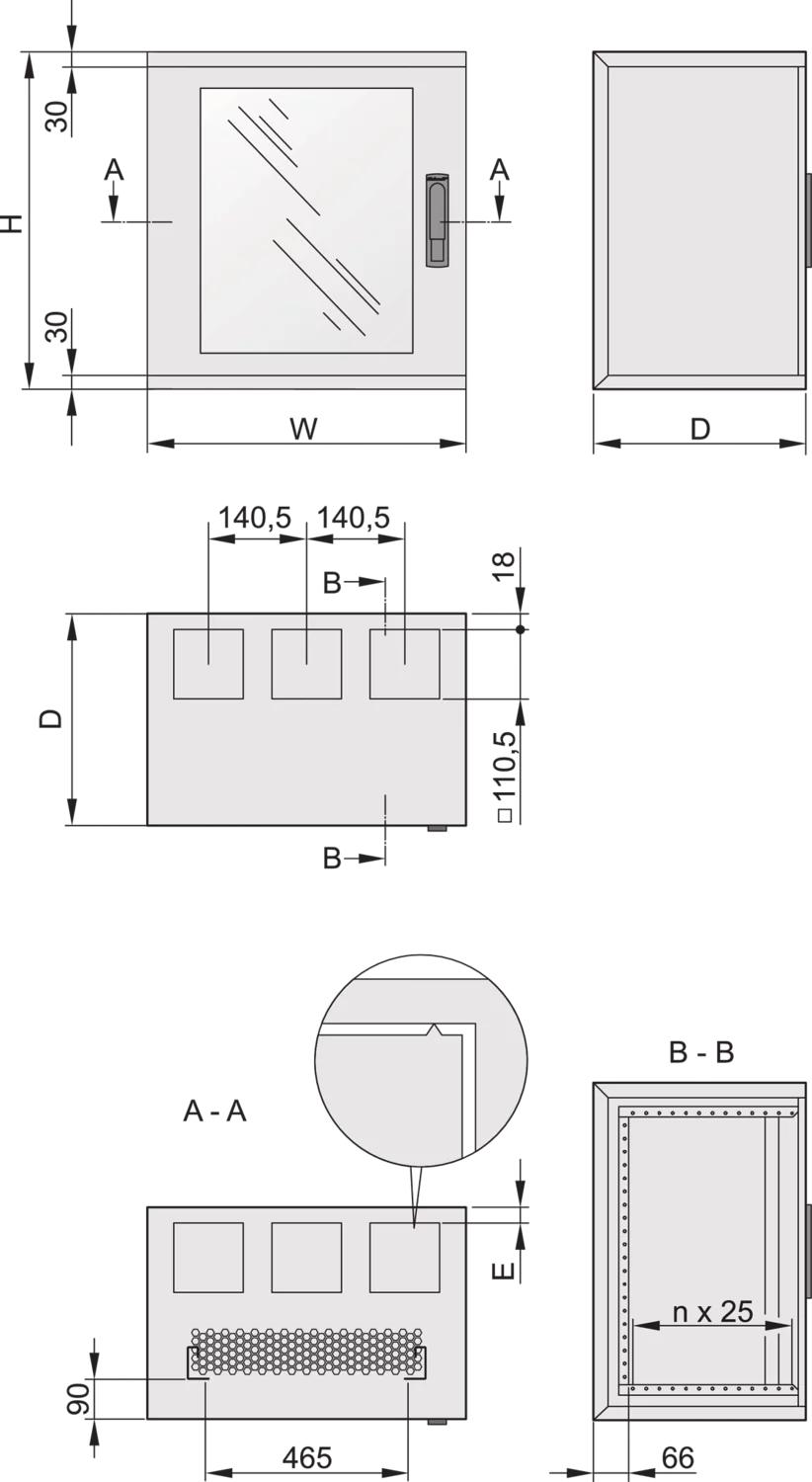 | 2 | Glazed door with key/lock (key no. 2233), door handle cut‐out S2100, frame, St, 1.5 mm, RAL 7035, Sekurit glass 4 mm | 1 | |