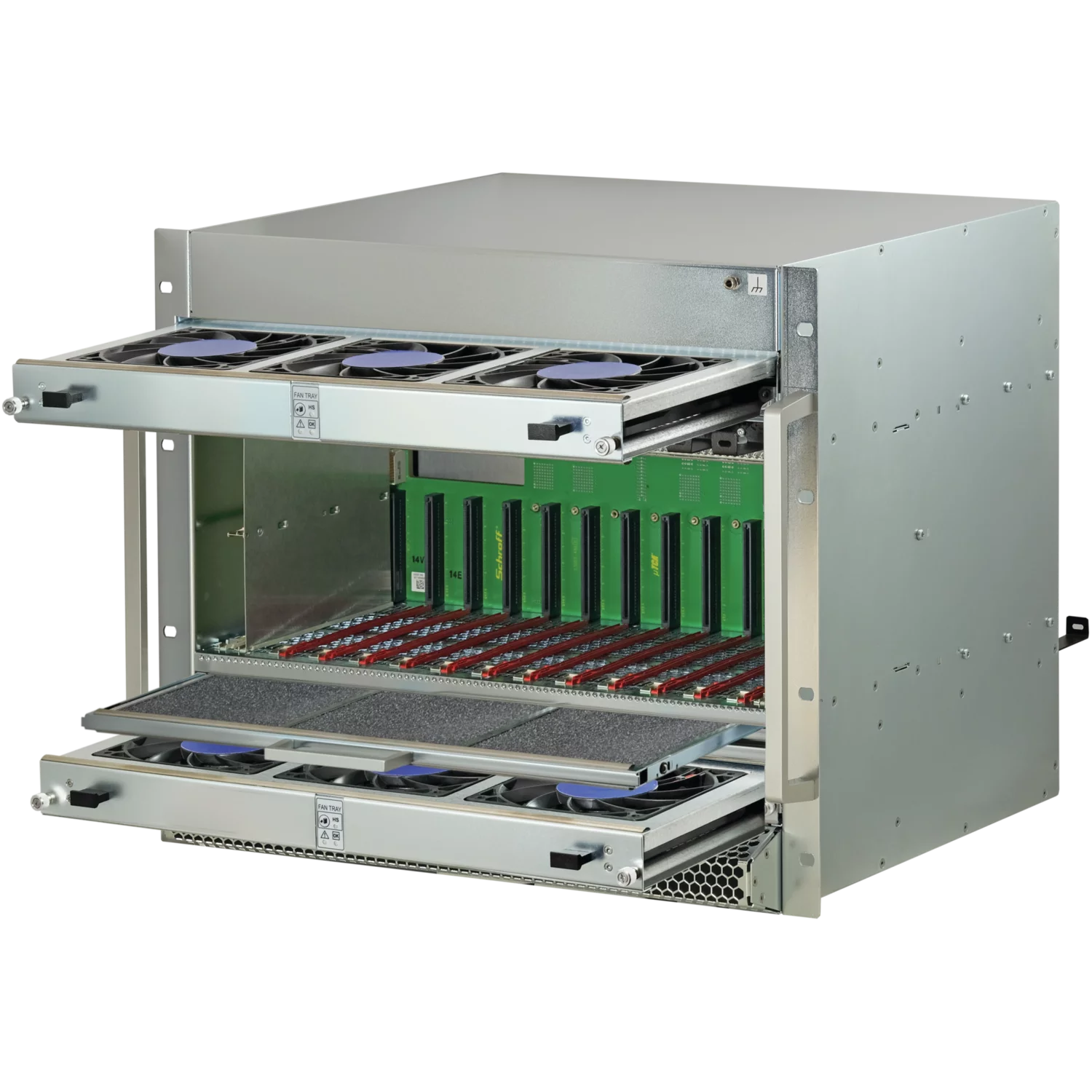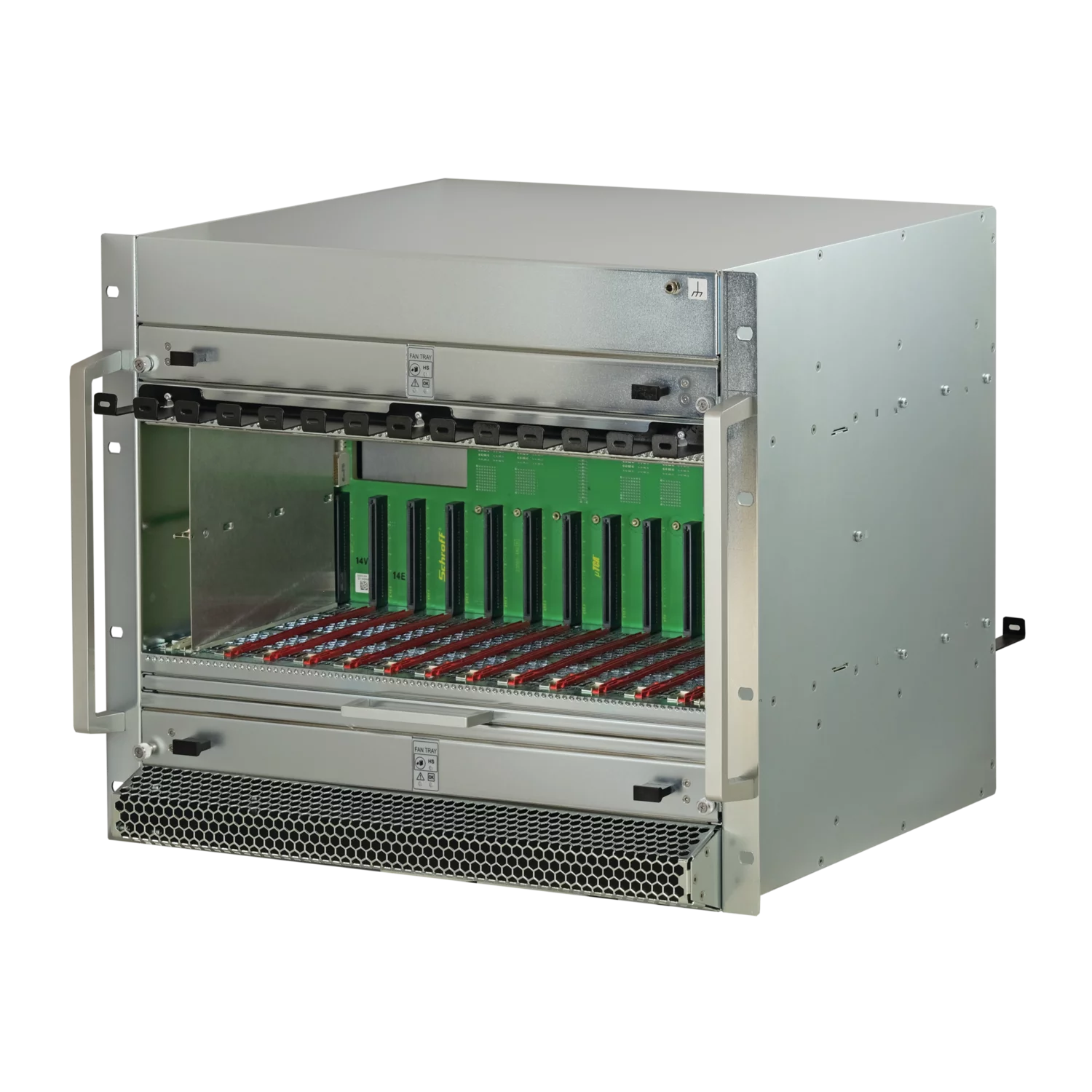 Система MTCA.4 для 12 двойных полноразмерных модулей AMC, топология CMS, высота 9 U, ширина стойки 84 HP