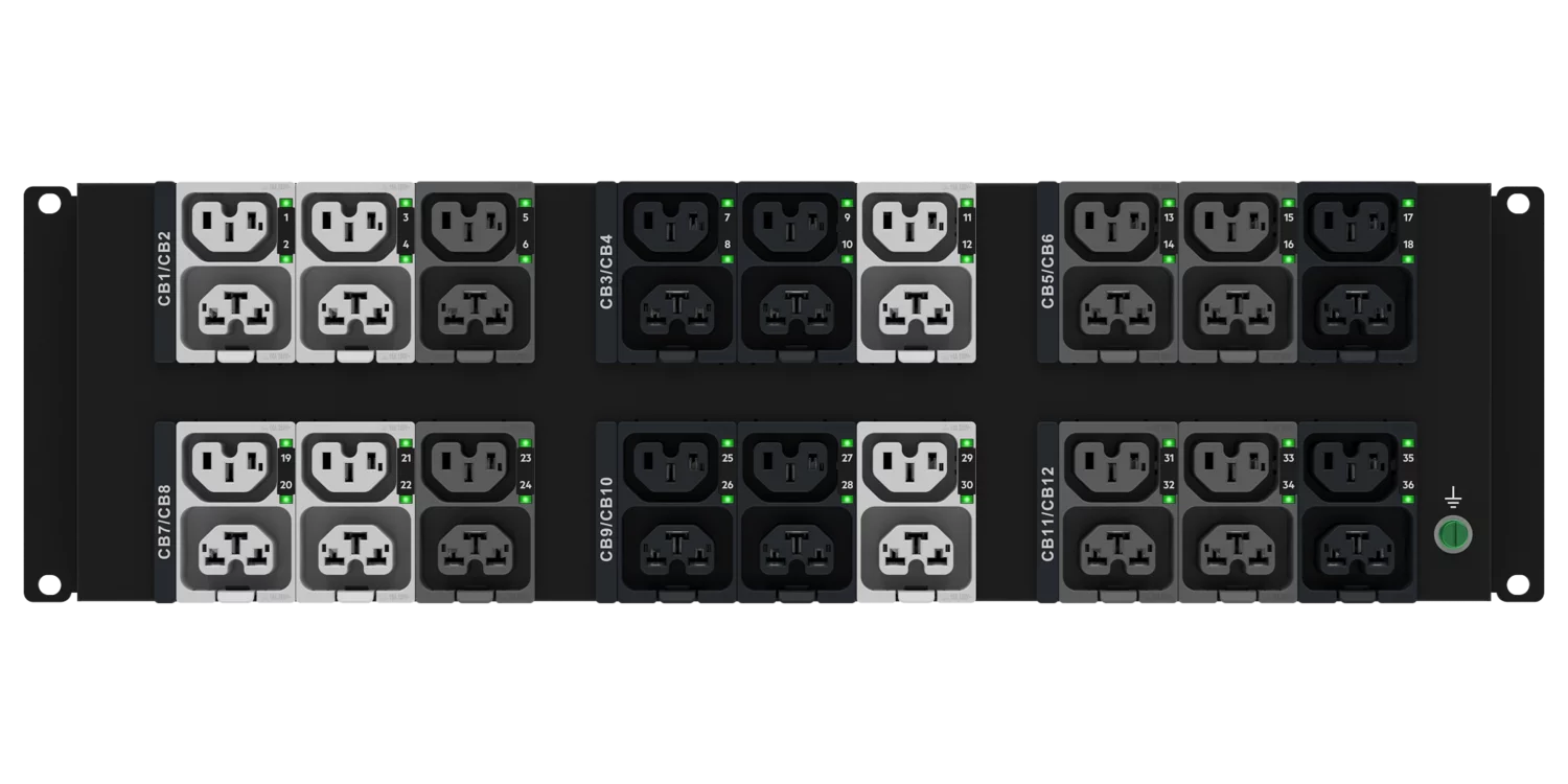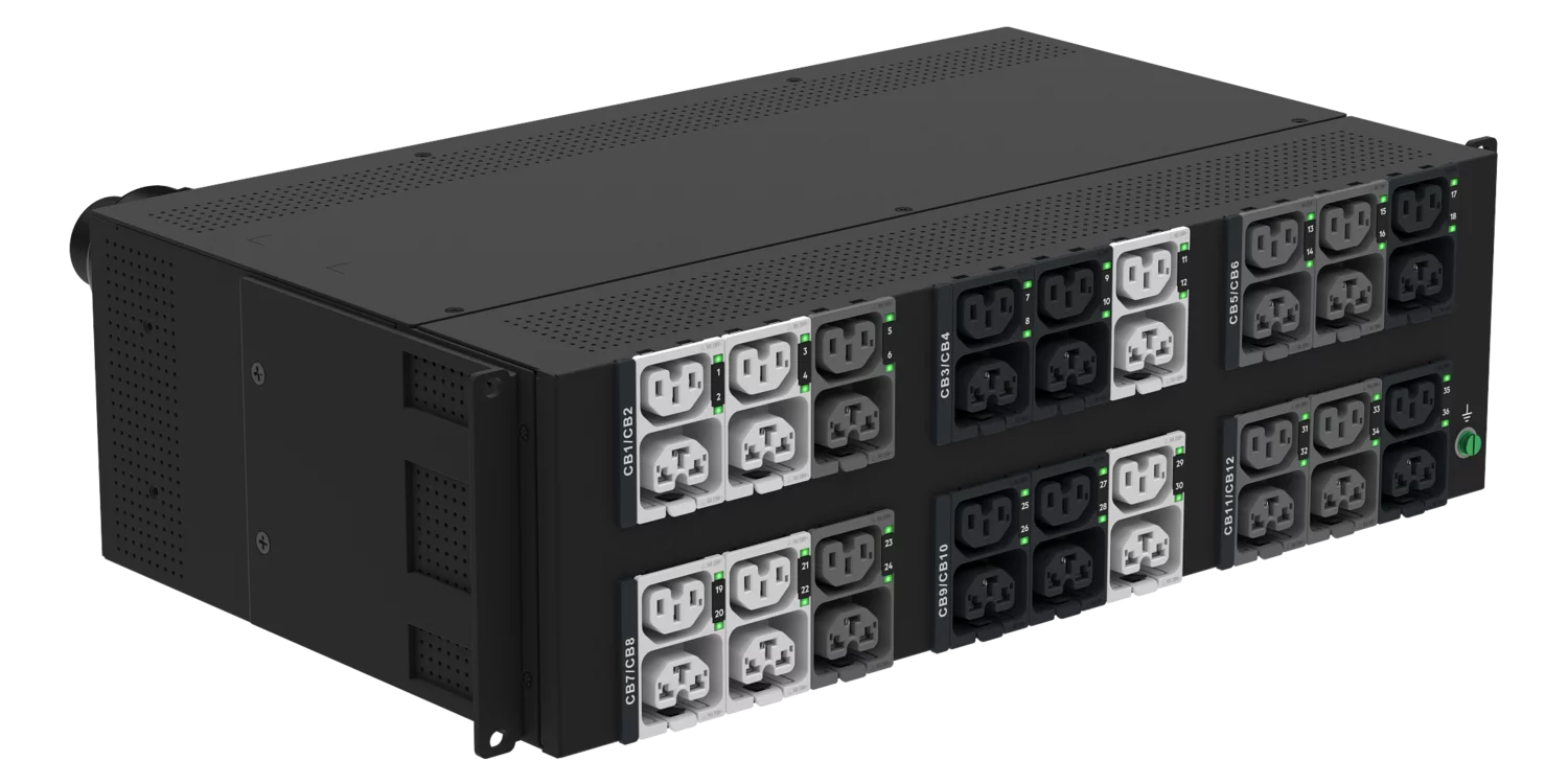 MSPO PDU, 3U, 100A(80A)NA/80A Int, 380-415V, 3P Wye, 12 CB, (18)C13, (18)4-in-1