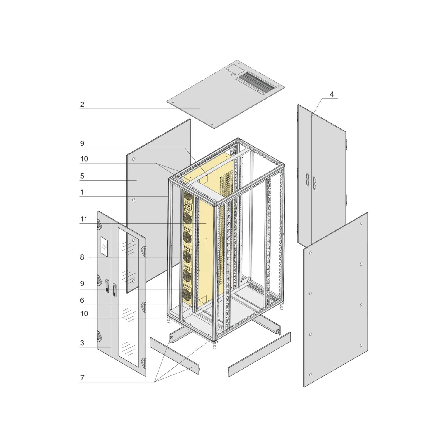 | 7 | Base/plinth 100 mm, with additional center crossmember, St, RAL 7021, removable covers, integrated adjustable feet | 1 | |