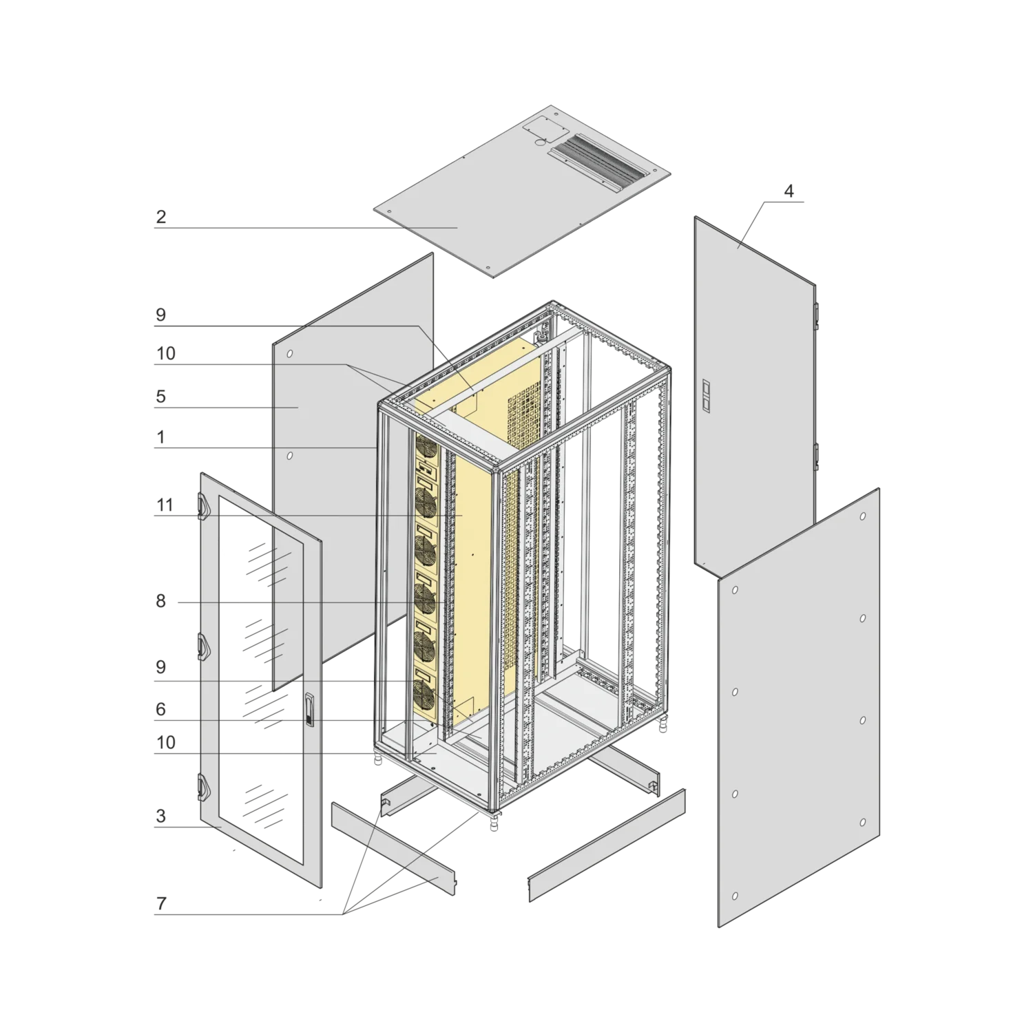 | 7 | Base/plinth 100 mm, with additional center crossmember, St, RAL 7021, removable covers, integrated adjustable feet | 1 | |