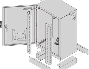 | 1 | Body, Al, 2.5 mm, RAL 7035, single wall side panels, insulation thickness 12 mm, non inflammable; 3 cable entry boots are mounted in base for various sizes of cables, 2 removeable lifting brackets | 1 | |
