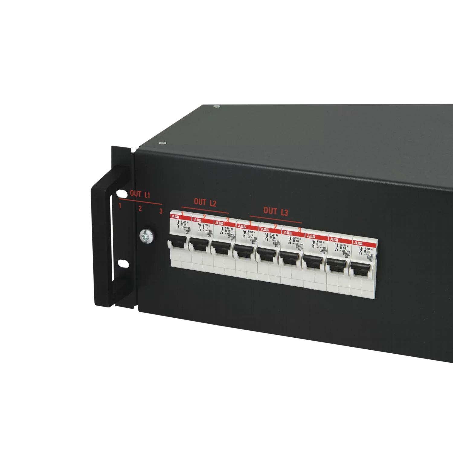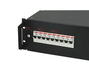 - 3-фазный распределитель питания для подключения однофазных потребителей или блоков розеток