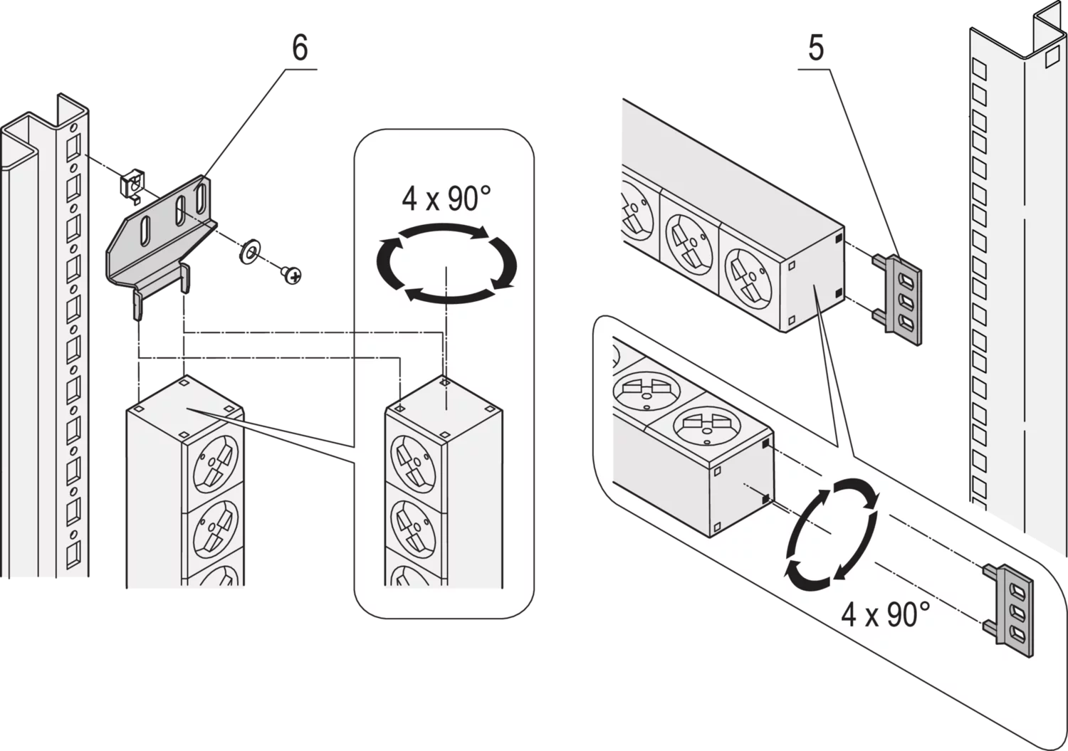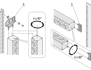 - При установке панель электропитания можно развернуть в любую сторону (с шагом 90°)