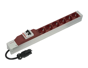 Блок розеток, SCHUKO, со входом Wieland®, 19 дюймов, цвет красный, с защитой от перегрузки по току