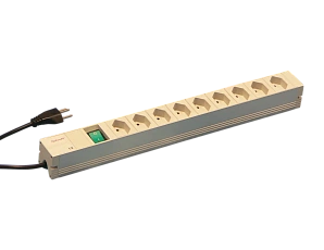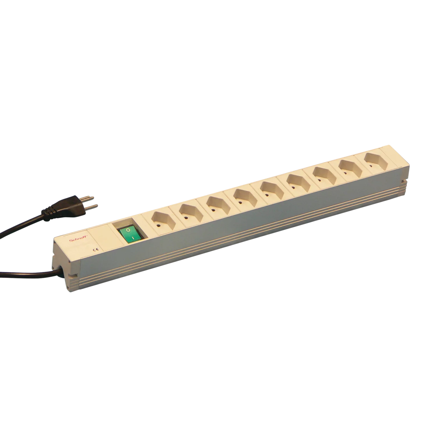 Блок розеток, тип J для Швейцарии, 9 х розеток, 19 дюймов, с выключателем