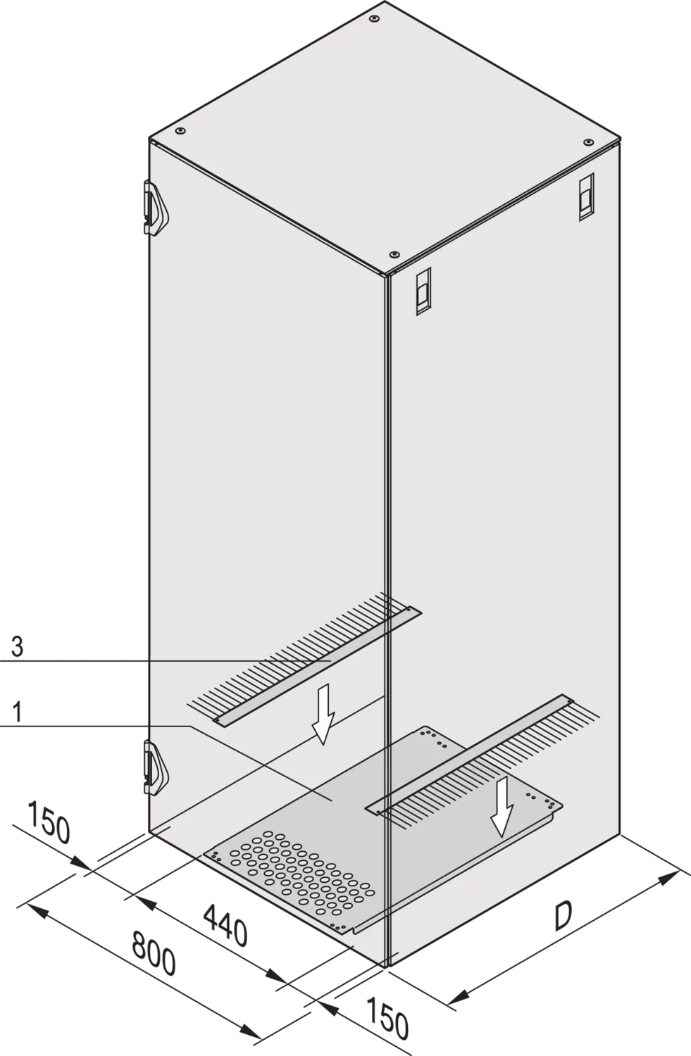 | 1 | Base plate, St, 1.5 mm, width 440 mm, RAL 7021 | 1 | |