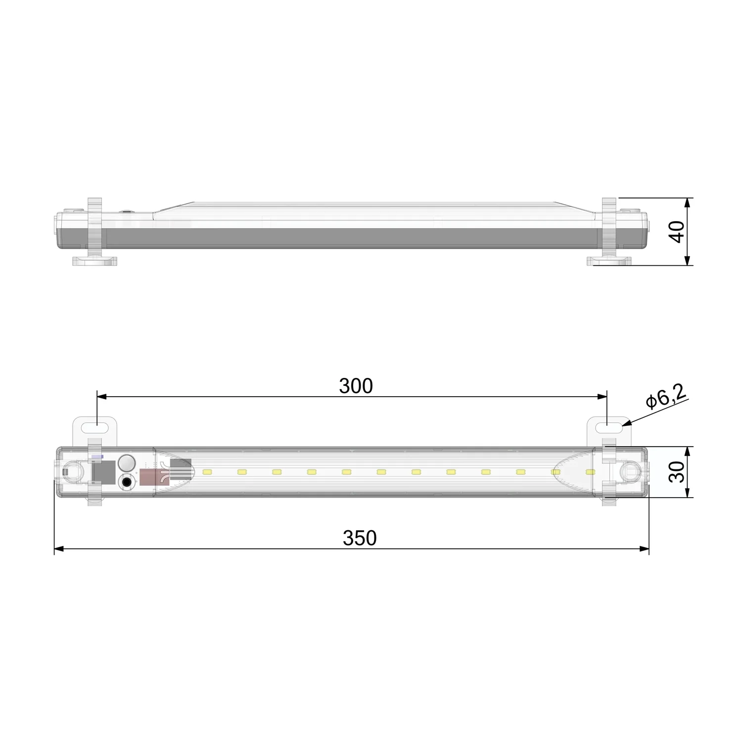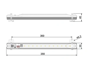 | 1 | LED lamp (plastic housing) with connection for Wieland plug (on both sides); Length 350 mm, width 30 mm, height 40 mm with holder | 1 | |