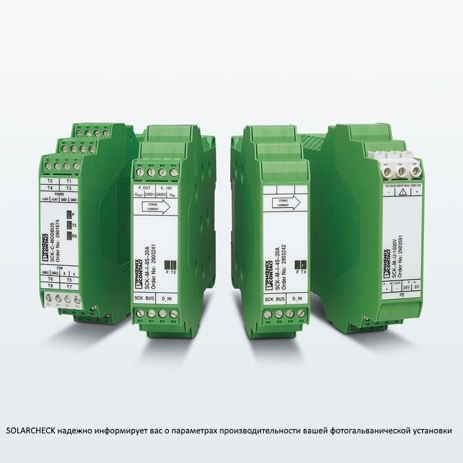 | 368664 | 2905168 | Модуль контроля ФГ-цепи - SCK-M-8S-20A-R | Измерительный модуль SCK для контроля процессов на фотогальванических установках, 8 модулей измерения тока до 20 A, 1 цифровой вход, интерфейс для коммуникационного модуля SCK, протокол связи первого поколения устройств |