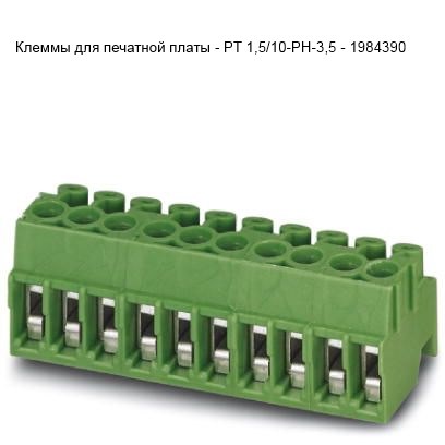 | 359071 | 1984099 | PT 1,5/10-PVH-3,5 | Разъемы для печатной платы, PT 1,5/..-PVH, Винтовые зажимы с элементом для защиты провода, Размер шага: 3,5 мм | 10 | 35 | 14,6 | 11 | : | 100 |
