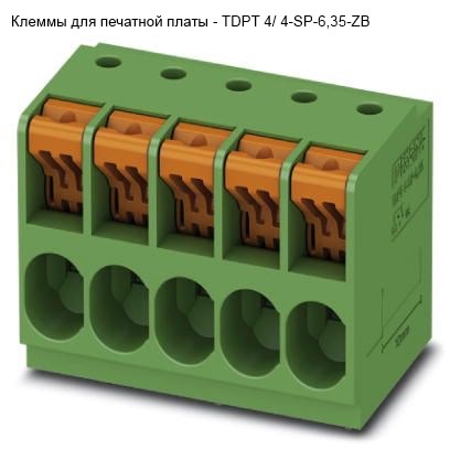 | 358372 | 1017524 | TDPT 4/ 5-SP-6,35-ZB | Клемма для монтажа на печатные платы, Пружинные зажимы Push-in, Размер шага: 6,35мм. TDPT 4/..-SP, Зигзагообр. разводка выводов W. | 5 | 32,55 | 20,75 | 23,4 | 3,5 | 50 |