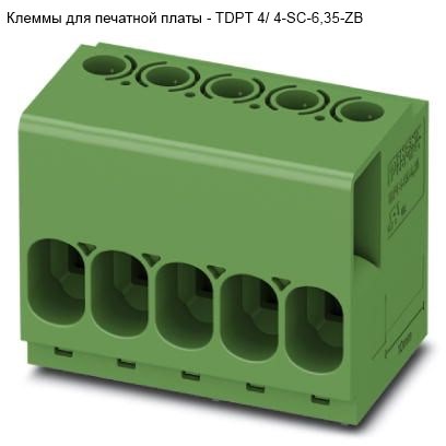 | 358302 | 1017516 | TDPT 4/ 4-SC-6,35-ZB | Клемма для монтажа на печатные платы, Винтовой зажим с натяжной гильзой, Размер шага: 6,35мм. TDPT 4/..-SC, Зигзагообр. разводка выводов W. | 4 | 26,2 | 20,75 | 23,4 | 3,5 | 50 |