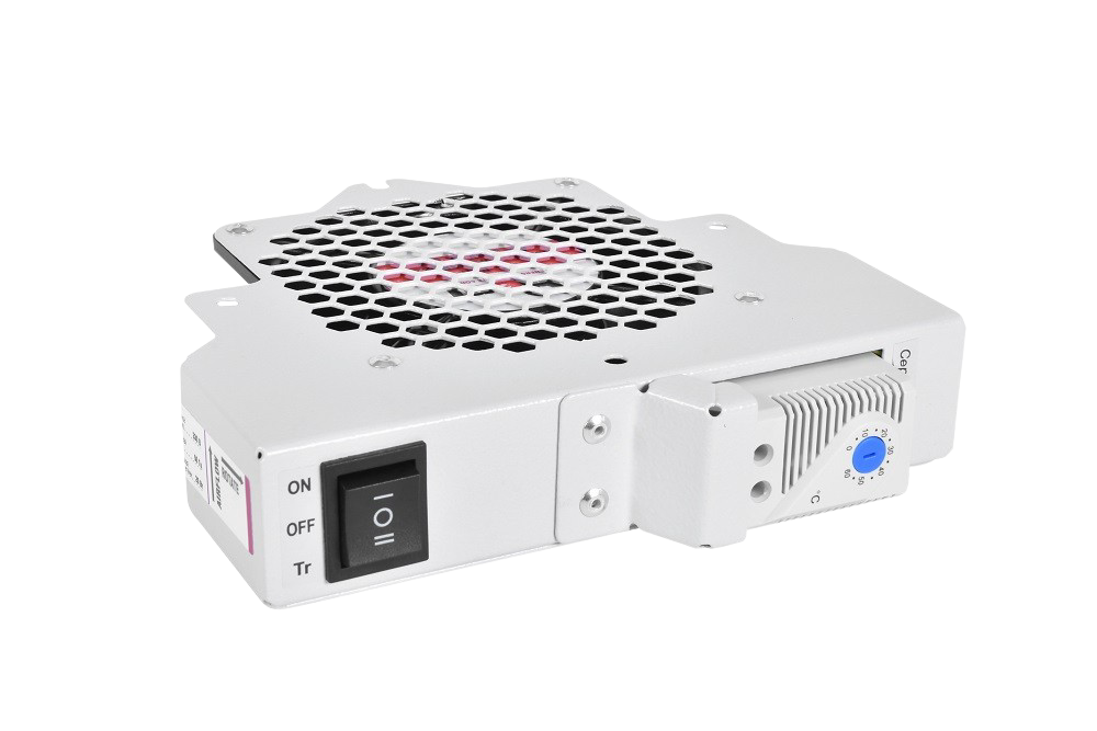 Модуль вентиляторный R-FAN-1T имеет терморегулятор. Порог включения задается в пределах от О до +60 С, порог выключения - понижение температуры на 7 С от заданной. Для подключения питания подходят шнуры с разъемом IEC 60320 C13.