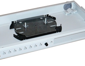 На лицевой стороне кросса расположены патч-панели с нумерацией портов и съёмная полка для патч-кордов. Внутри корпуса кросса предусмотрены механизмы фиксации оптического кабеля.